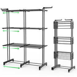 - Sechoir a linge etendoir extensible et pliable grande capacite sechage 190x53x170cm Noir