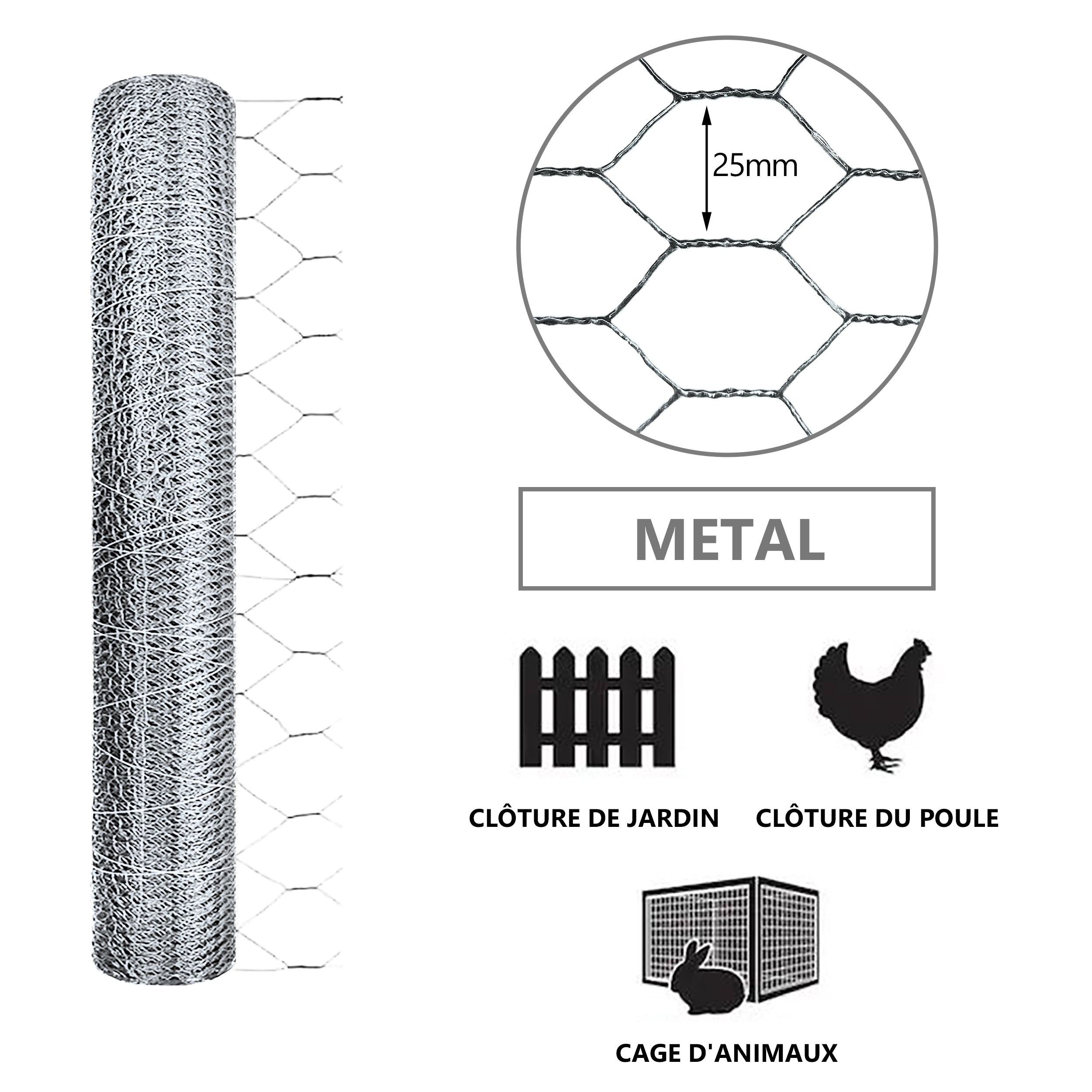 | Grillage a poule en acier galvanise Maille 25mm | Grillage a poule en PVC gaine vert Maille 25mm | Grillage a poule en PVC gaine gris Maille 25mm |