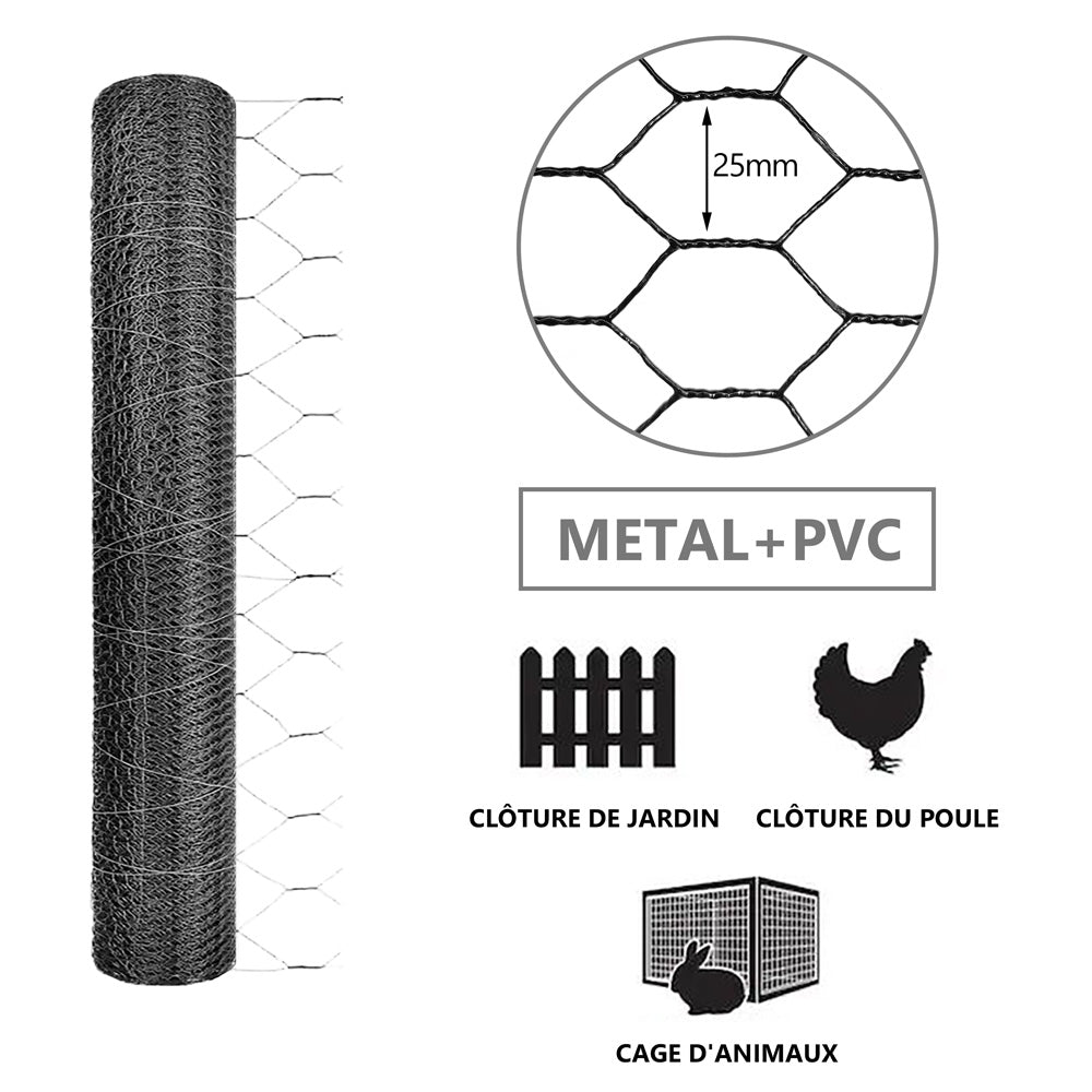 Grillage a poule avec fils 25mm en PVC gaine gris 1x50M