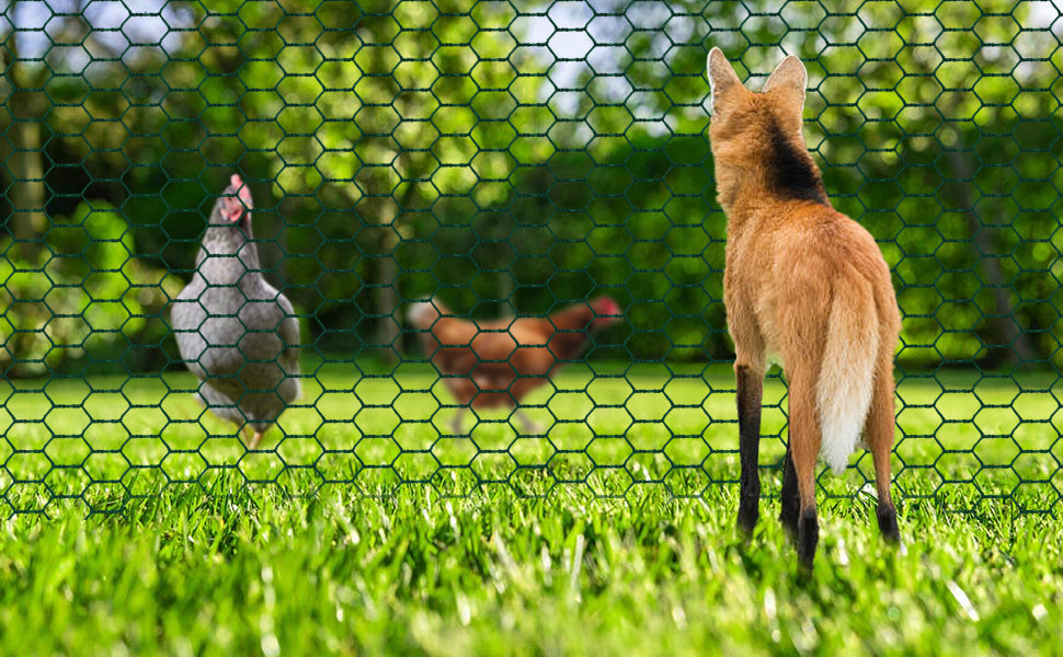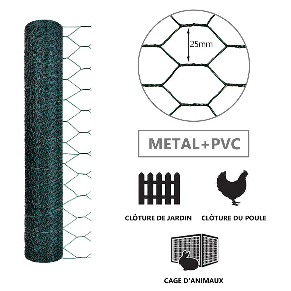 NE ROUILLE PAS. La surface de notre grillage hexagonal est recouverte d'un revêtement PVC. Cela en fait une utilisation à long terme et ne rouille pas et ne se déforme pas. Cette clôture peut être coupée à l'aide d'une paire de ciseaux selon les besoins et pliér dans la forme souhaitée. Cette clôture peut être coupée à l'aide d'une paire de ciseaux selon les besoins et plié dans la forme souhaitée.