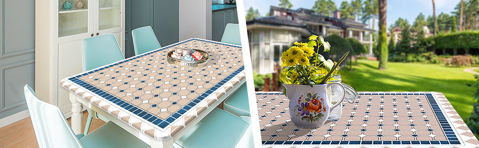 • Cette nappe de table est faite de PVC et de tissu non-tissé de première qualité avec traitement imperméable à l'eau. Il ne se décolore pas et ne s'abîme pas facilement.
