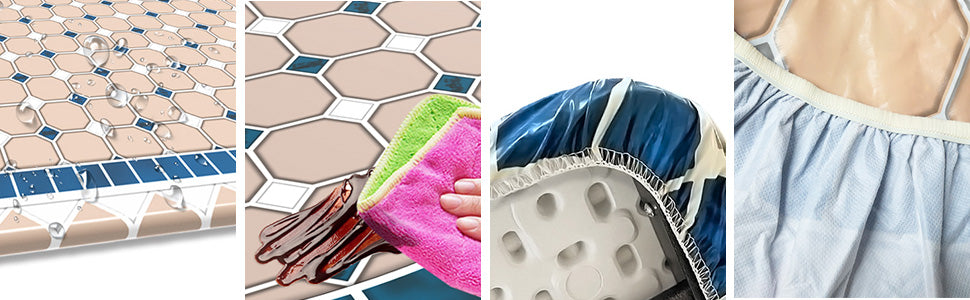 Nappe imperméable | Nappe peut être nettoyée avec un chiffon humide | L’élasticité des bords permet un bon maintien de la housse | Couche intérieure en tissu non-tissé évite les nappes de glisser